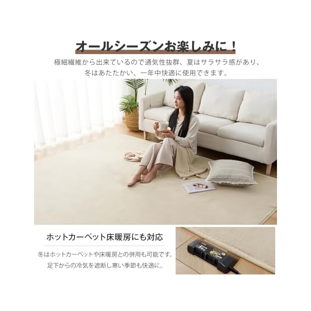 ✨【ホットカーペット対応、オールシーズン快適に】人気のフランネルラグ!速乾性、通気性が優れています。耐熱加工を施しているので、冬はホットカーペットや床暖房の上に敷いてもお使いいただけます。夏はさらりと、冬は暖かく、季節が考えなくて年中使えるカーペットです。