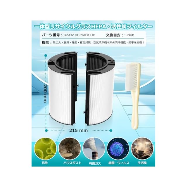 商品名:ダイソン 用 フィルター Dyson HP04 HP07 TP04 TP07 PH01 PH03 PH04 DP04 TP10 HP10 用 空気清浄機 フィルター 一体型リサイクルグラスhepa・活性炭フィルター TP09 HP09 TP7A TP06 HP4A HP06 PH02 PH3A 加湿空気清浄機 フィルター アップグレード版 965432-01 / 970341-01 互換品