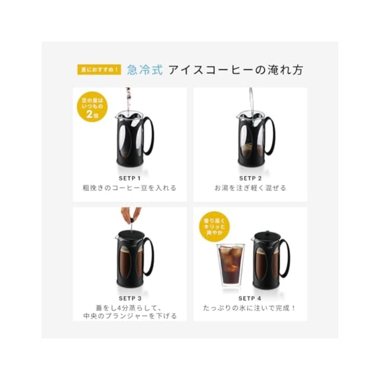 商品名:BODUM ボダム コーヒーメーカー コーヒープレス KENYA ケニア フレンチプレス コーヒーメーカー 500ml ブラック ステンレスフィルター ガラスビーカー 浸漬式 コーヒー 【正規品】 10683-01