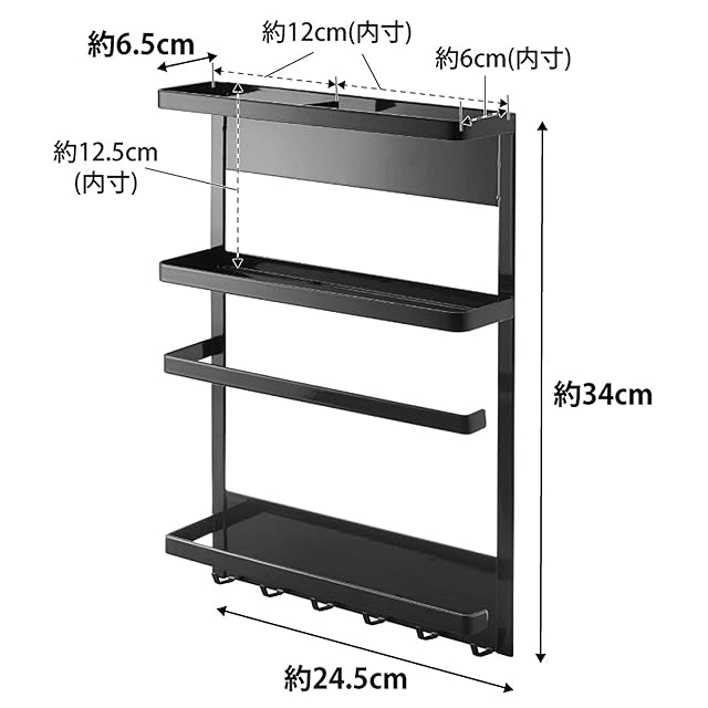 商品名:山崎実業(Yamazaki) マグネット 冷蔵庫サイドラック ブラック 約W24.5×D6.5×H34cm タワー tower キッチンペーパーホルダー ラップホルダー 2745