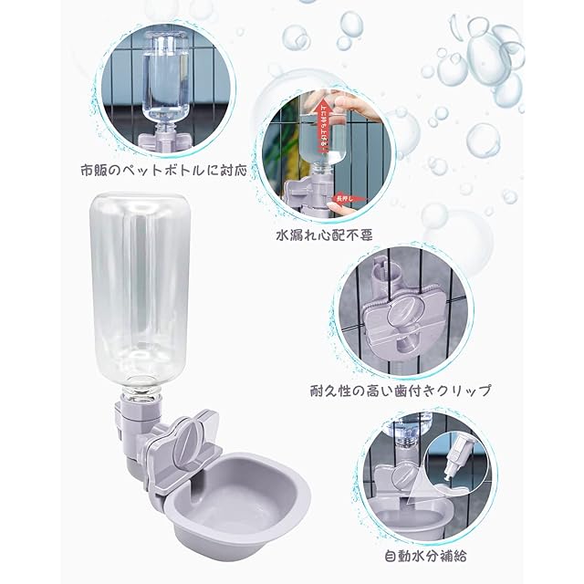 Beraypoo 犬 猫 水飲み器 給水器 ペットボトル 使用可能 ケージ 取付型 電源不要 お留守番対応 熱中症を防ぐ 転倒防止 漏れ防止 ペット用品 (パープルグレー, 水飲み器) | Trend Design BASE店