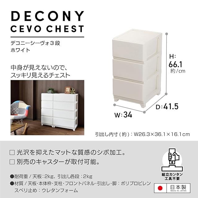 商品名:JEJアステージ 収納ケース デコニー シーヴォ 3段 ホワイト 簡単組立 日本製 幅34×奥行41.5×高さ66.1cm