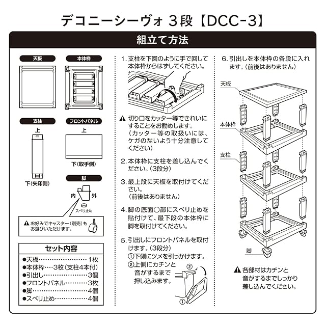 材質:天板・本体枠・支柱・引出し・フロントパネル・脚:ポリプロピレン / スベリ止め:ウレタンフォーム