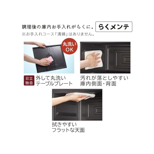 汚れを落としやすいシリコン系塗装の庫内側面・背面や平面グリルなど、調理後のお手入れがらくに。「らくメンテ」