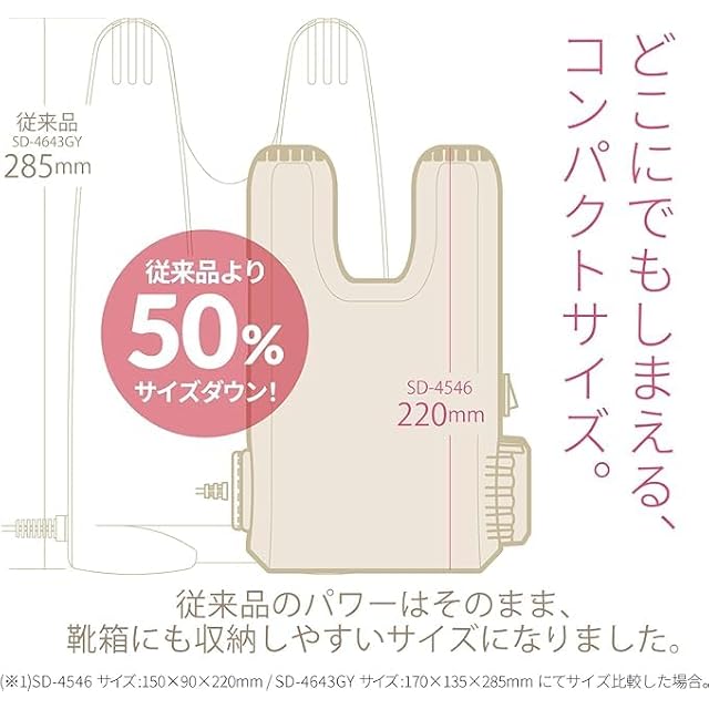 消費電力: 「標準」モード時:150W、「革靴」モード時:135W サイズ:W150×D90×H220mm 本体質量:670g