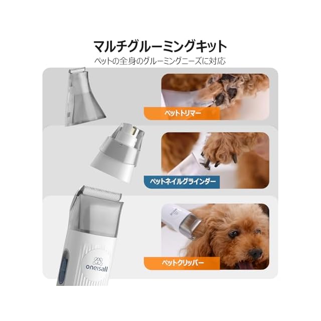 【7in1・グルーミング掃除機と電動バリカンとブラシを一体化したペット用グルーミングセット】従来のペット用バリカンやブラシと違って、Oneisall ペットグルーミング掃除機(LM2)はペットのグルーミングツールとペットグルーミング掃除機を組み合わせ、トリミングとブラッシングすると同時に、抜け毛などを簡単に吸い込むことができます。 この一体化犬 掃除機セットによって、あっという間に抜け毛や浮いた毛(死毛)を99%除去でき、ママカット、サーマーカット、犬バリカンを家でできます。