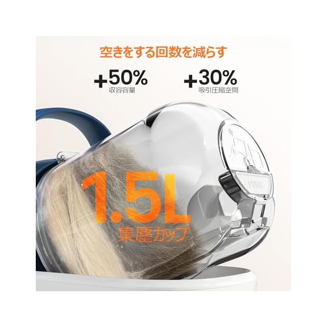 【大容量ダストカップ・着脱簡単】Oneisall LM2ペット犬用掃除機は、大容量の1.5Lのダストカップを採用、一度で非常に多くの毛を溜めることができます。抜け毛を漏れなくキャッチして吸い込んでくれるので、舞い散ることがありません。ダストカップの着脱は簡単で、中身の毛やゴミを手軽にクリンアップできます。取り外したダストカップは水洗することができます。