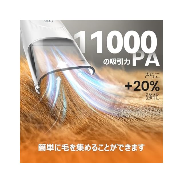 【簡単操作・3段階の吸引力モード】アタッチメントを選んでペットの毛掃除機本体に接続してから、スイッチを入れてブラッシングしながら抜け毛を吸い取ります。若い女性でもお手軽に操作できます。吸引力のモードは「3500PA」、「7000PA」、「10000PA」という3段階のパワーがあり、狭い車内や、自宅の絨毯、手の届かない棚の上で、抜け毛やゴミに気付いた時、サッと取り出して掃除できます。場合によってご自由にモードを選択できます。(初めてのご使用には第1段階からを勧めます、最初はペットが動作音に慣れないように驚かされるのを防ぐため)
