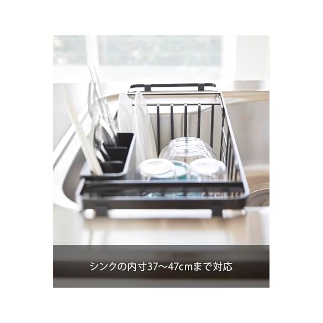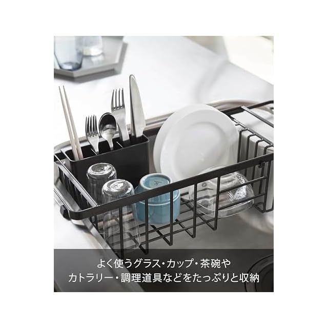 山崎実業(Yamazaki) 伸縮 水切りワイヤーバスケット ブラック 約W44~54×D19.5×H14cm タワー tower 水切りラック カトラリーポケット付き 3493 | Trend Design BASE店