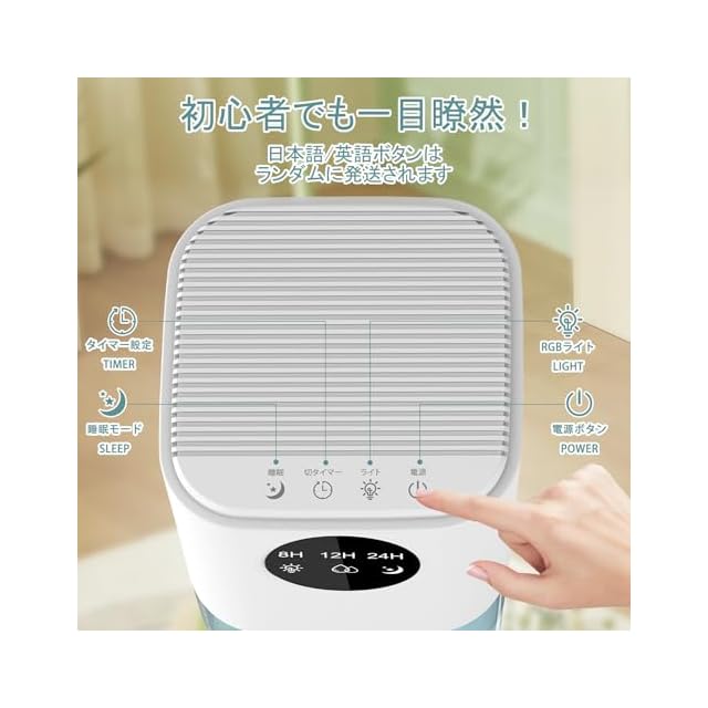 【7色の雰囲気ライト・お休みモード】ライトボタンを押すことで、7色のライトが自動で切り替わるモードや、色を選択できるモードに切り替え可能。また、寝室でも安心して使える「お休みモード」を搭載しており、運転音が静かになり、睡眠の邪魔をしません。