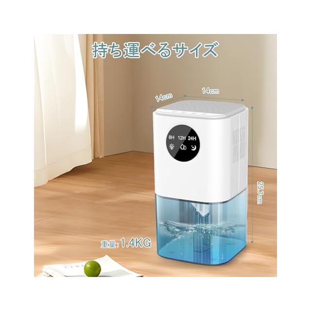【1.5L大容量・手間いらず】この小型除湿機は、透明な水タンクを採用しており、タンクの水量を一目で確認できます。1.5Lの大容量分離式水タンクを搭載しており、週に一度の排水でOK。ハンドル付きで、簡単に持ち運べるので、リビングや寝室以外にも、風呂場、洗面所、クローゼット、靴箱などの狭いスペースにぴったりです。