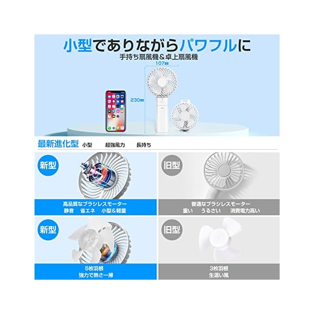 「コンパクト&携帯便利」コンパクトなサイズで、テーブルのどこに置いても邪魔にならないです。外出する時もより持ち運びに便利です。多変化の扇風機 手持ちや卓上用の機能を備えていて、ご希望に応じてモードが選択できます。日帰り旅行に適用していて、夏の外出活動にご親友と嬉しさを存分に楽しめます。