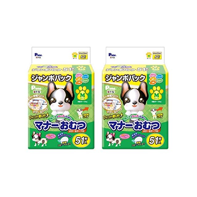 商品名:P.one 通販用 男の子&女の子のためのマナーおむつ のび~るテープ付き ペット用 Mサイズ 51枚入×2個 (ケース販売)