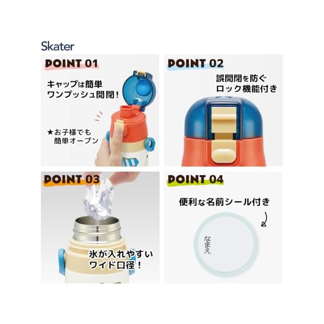 スケーター(Skater) 子供用 ステンレス 水筒 2way 直飲み 470ml コップ飲み 430ml はたらくクルマ 子供に優しい軽量タイプ 男の子 保温・保冷waterbottle スポーツボトル かわいい キッズ 子供 こども 水瓶 SKDC4-A | Trend Design BASE店