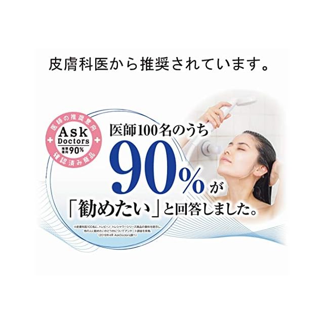 【日本アトピー協会推薦品】日本アトピー協会推薦品に認定されています。【医師が推奨する浄水シャワーヘッド】「AskDoctors医師の確認済み商品」マーク取扱商品医師100名のうち90%が勧めたいと回答しました。
