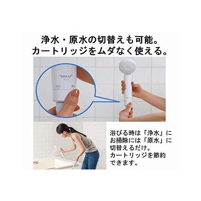 【浄水・原水をカンタン切替え】髪や身体を洗う時は浄水にお風呂を掃除する時は原水に、手元で簡単に切替えられるので、カートリッジを無駄なく使えます。