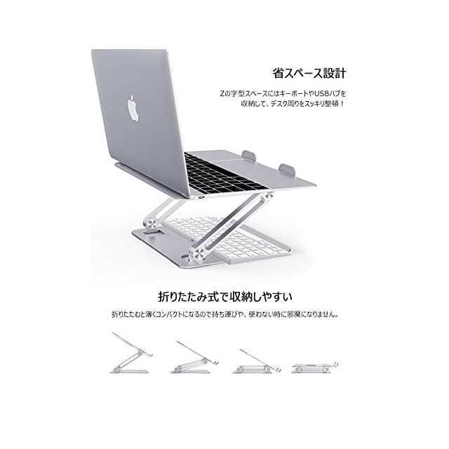 商品名:EPN ノートパソコンスタンド 折りたたみ式 無段階調整 放熱 滑り止め付き 16インチ以下に対応 シルバー