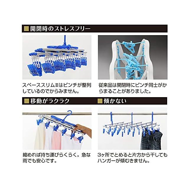 商品名:キクロン 洗濯 物干し ハンガー 伸縮ハンガー 30ピンチ ブルー ピンチ取り替え可能 角ハンガー スペーススリムⅡ