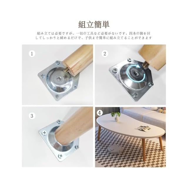 【组み付けが简単】木制のテーブルは足を组むだけで、女の子でも1人で简単に组むことができます。工具は必要ありません。4本の足をテーブルパネルの后ろに回してすぐに使えます。