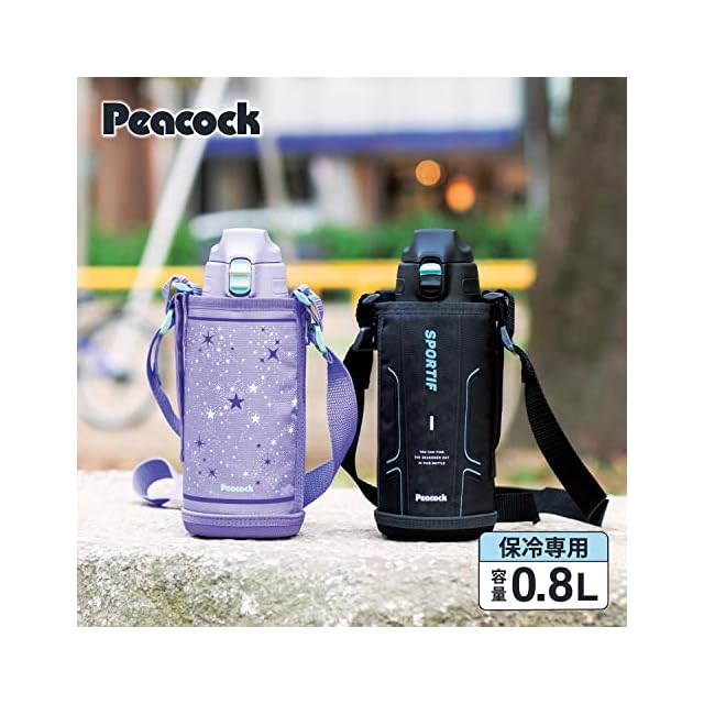 ピーコック魔法瓶工業(The-peacock) ピーコック 水筒 800ml 保冷 キッズ 小学生 女の子 真空断熱構造 ワンタッチ 直飲み ポーチ付 ステンレスボトル パープルスター AJC-F82 AVS | Trend Design BASE店