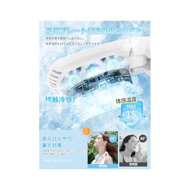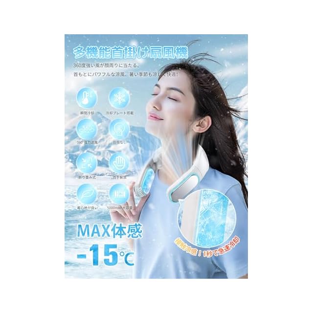 【2025年夏ネッククーラー】2025年最新ネックファンは、折り畳み式のネッククーラー付きで、ネッククーラーとネックファンが一体になった商品です!冷却プレートの設計により冷却能力が大幅に向上し、いつでもどこでも涼しさを楽しめるので、この夏の必需品になります。強力な瞬間冷却により、顔と首をよりよく冷やし、爽やかな涼しい風を広げ、継続的に温度を下げ、いつでも灼熱の太陽から逃れることができます。 Vineen 首掛けクーラーなら、いつでも最高のパフォーマンスを発揮し、屋外でのアクティビティをより楽しくすることができます。<br><br>このネックファンはパワフルなモーターを搭載し、最先端のペルチェ素子技術を採用することで、大風量で首元を素早く冷却します! 夏の暑い日でも快適に過ごせます。 このネッククーラー冷却パネルは、アウトドアやスポーツ観戦中の強い日差しでも涼しさを保ちます。3段階の冷却レベルと、外気温より-15℃まで冷却する風力調整モードで、真夏でも涼しく快適に過ごせます! このネッククーラーは3段階の調節が可能で、ボタンを押すだけで、風量3段階(強・中・弱)、冷房3段階(弱・中・強)に切り替えることができます。 軽い冷却から強い冷風まで、必要に応じて設定を調整できます。 この柔軟性により、このネッククーラーはユニークになり、オフィス、自宅、屋外のどこで使用しても常に最適な快適さを提供します。<br><br>【折りたたみ式、負担ゼロ、装着感ゼロ】伸縮性のあるプラスチック+シリコン素材で作られており、柔らかく角度調節可能なため、さまざまな人に適しています。このネッククーラーは首を常に涼しく快適に保ち、柔らかく快適な形状記憶シリコンが肌にぴったりフィットします。新しい人間工学に基づいたデザインにより、首にぴったりフィットし、日常生活から激しいスポーツまで快適な装着感を提供します。お好みに合わせてサイズを自由に調整できます。また、軽量で折りたたみ可能なので、コンパクトに収納でき、携帯性も高く、バッグに入れて持ち運びも楽々です。<br><br>【長時間連続稼働】このネッククーラーには5000mAhのリチウムイオンバッテリーが内蔵されており、Type-Cで充電できます。充電には約3時間かかり、最大10時間連続使用できます。充電しながらパソコン、車載USB充電器、携帯電話バッテリー使用可能、外出時や充電がある場所でも安心して使用できます。また、このネックファンにはLEDディスプレイが内蔵されており、風量レベル、冷却レベル、バッテリー残量をリアルタイムに表示できます。風量や冷感を簡単に調整できます。いつでも快適な涼しさをお楽しみいただけます!<br><br>【安全、耐久性、静音設計】この 首掛け扇風機は超軽量設計を採用しています。長時間使用しても首に負担がかからないネックエアコンです。日常生活のあらゆる場面で気軽に使用でき、持ち運びも簡単です。また軽量で静音なので、髪の毛が絡まったり異物が挟まったりする心配もなく、安心・安全にお使いいただけるネッククーラーです。スタイリッシュなネックファンで暑い日も快適に過ごせます。静音設計なので、オフィスや図書館などの静かな場所でもご使用いただけます。母の日、父の日、女性、男性、恋人、友人、家族、誕生日プレゼントなど、特別な夏のギフトを選ぶのに苦労することはありません。