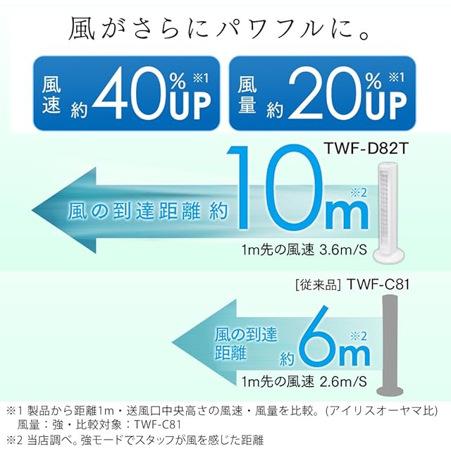 【パワフル】従来品(TWF-C81)を設計から見直し、本体内の空気の流れをより効率的に。風速・風量がアップし、心地よさがお部屋のさらに奥まで行き渡るように。