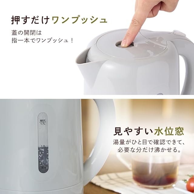商品名:ヒロコーポレーション 1.7L たっぷり大容量 空焚き防止機能 中身が見やすい 自動 スイッチOFF お手入れ簡単 KTK-017 ブラック