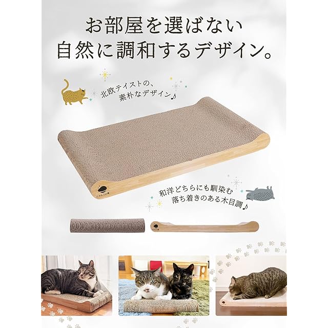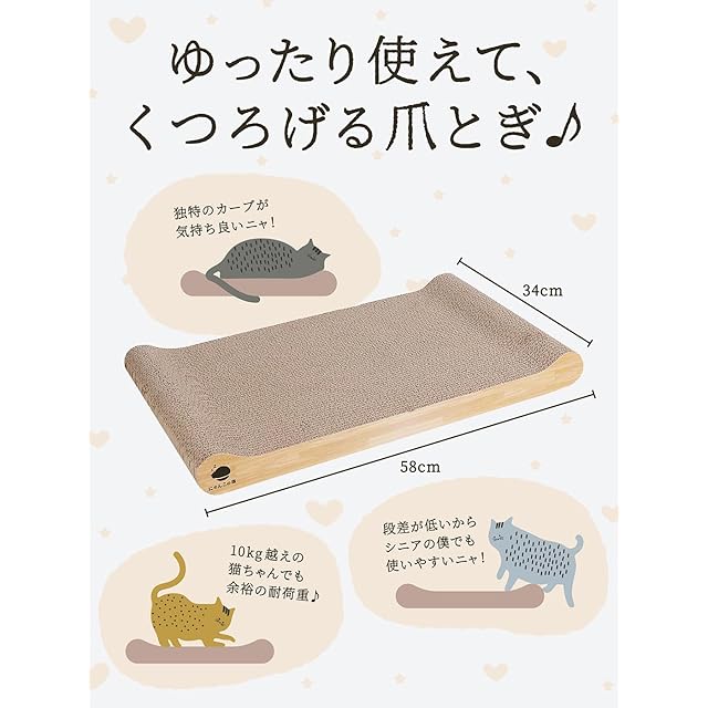 【 耐久性 】通常の段ボールの10倍の強度を誇る4層強化段ボールを使用しているので一般的な爪とぎより長持ち。だからカスが出にくい【猫ちゃんのからだにフィット】どちらの面も絶妙な角度のカーブで猫のやわらかいからだにフィットします。