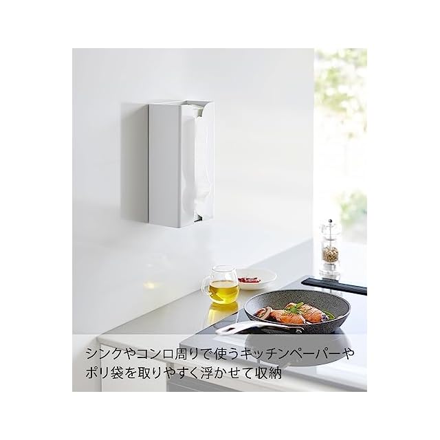 山崎実業(Yamazaki) マグネット ポリ袋 & キッチンペーパーホルダー ホワイト 約W13×D8.3×H26cm タワー tower ティッシュケース ポリ袋ホルダー 簡単取付 3773 | Trend Design BASE店