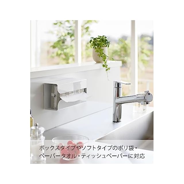 耐荷重:約1kg ・対応サイズ:約W12.5×D7.5×H25.5cm以内のボックスタイプやソフトパックのポリ袋・キッチンペーパー・ペーパータオル・ティッシュペーパー