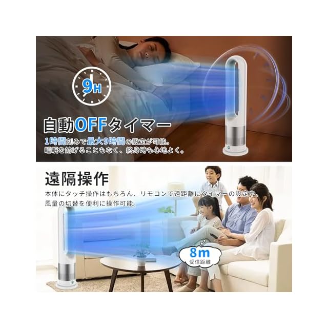 商品名:【2025新登場・冷暖兼用・羽根なし 】扇風機 タワーファン 温風 冷風 冷暖房 8段階送風&3段階温風 DCモーター 100°首振り 9hタイマー 強風&微風&静音モード 大風量 羽根なし扇風機 リモコン操作 縦型 スリムファン 転倒&過熱OFF 足元ヒーター セラミックファンヒーター 子供部屋/脱衣所/トイレ/キッチン/寝室/リビンク/書斎/ペット用 PSE認証済 日本説明書 ホワイト
