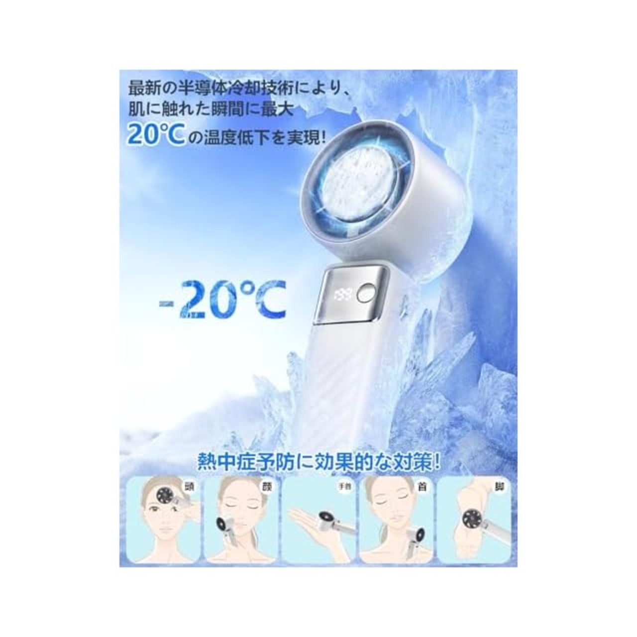 商品名:【2025年モデル・夏の涼風】ハンディファン 手持ち扇風機 強力送風 冷却プレート -20℃瞬間冷却 携帯扇風機 7枚羽根 1~199段階無段階風量調 5400mAh 充電式 ハンディ扇風機 小型扇風機 USB扇風機 Type-C 手持ちクリップ 液晶画面 残量表示 軽量 卓上 扇風機 熱中症対策 暑さ対策 首掛け ストラップ付き カラビナ付き ホワイト(日本語説明書)