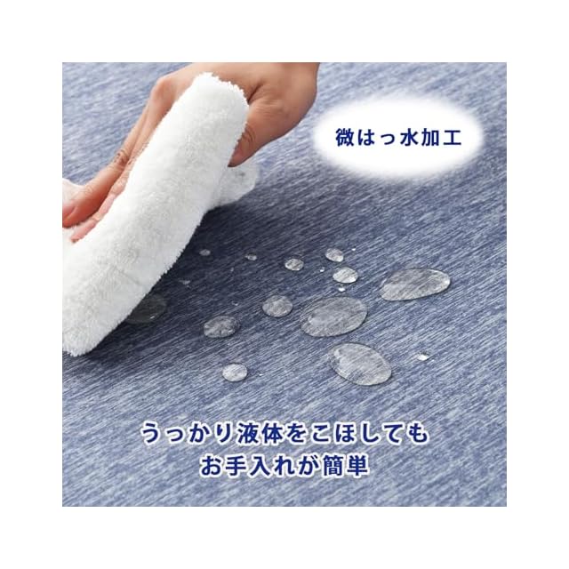 【はっ水加工】この夏用ラグは液体をこぼしても表面で水玉状になるのでサッと拭くだけで綺麗になります、汚れが付きにくくてお手入れ簡単です。(すぐに拭き取ってください。液体をこぼした場合、長時間放置するとカーペットに染み込む場合があります)