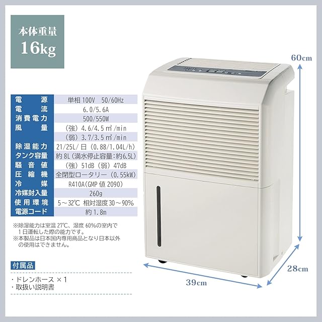 商品タイプ:除湿能力(50/60Hz):21/25L