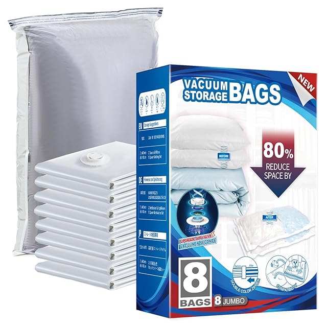 TAILI 布団圧縮袋 真空圧縮袋 衣類 あっしゅく袋 ふとん 掃除機対応 防塵防湿 カビ ダニ対策 羽毛布団 毛布 ぬいぐるみ収納 家庭用 引越し 旅行 出張 衣替え 特大サイズ 8枚入 グレー | Trend Design BASE店