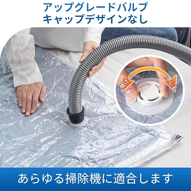 注意事項:最適な圧縮効果を得るために、圧縮袋を使用する際には、アイテムが完全に乾燥して清潔であることを確認してください。できるだけ袋内の空気を排出し、スライダーをしっかりと密閉してください。また、圧縮袋は壊れやすいまたは鋭利なアイテムの保管には適していませんので、袋が損傷することがありませんようにご注意ください。収納アドバイスに従い、圧縮袋を正しく使用して、最適な収納効果とアイテムの保護を実現してください