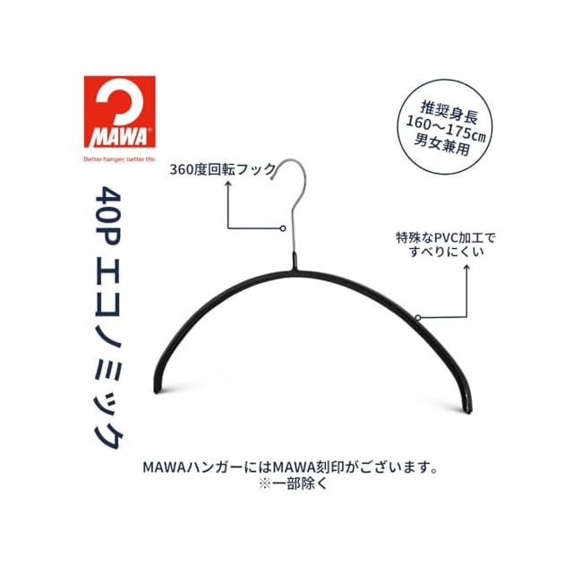商品名:マワ ドイツのすべらない ハンガー エコノミック 40P 20本組 ホワイト 10年