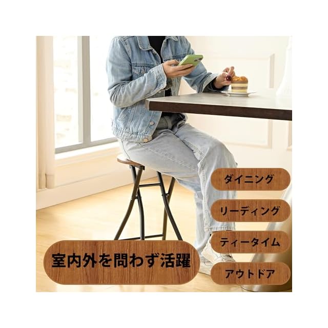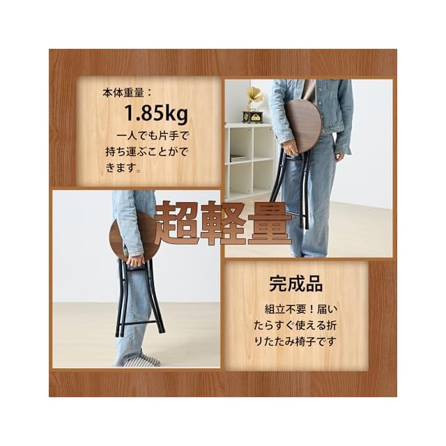 商品名:VECELO 折りたたみチェア パイプ椅子 折り畳み 軽量 スリム 持ち運び 完成品 組立不要 高さ46.5cm 耐荷重100kg 木目