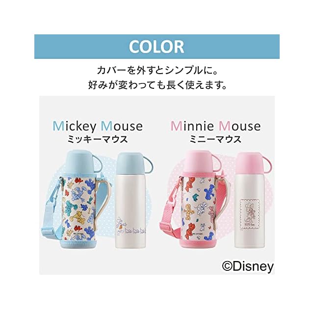 商品名:アイリスオーヤマ 水筒 子供用 キッズ 2WAYボトル 600ml ミニー コップ付きタイプ 直飲みタイプ 簡単付け替え出来る 1歳から使える オールシーズン対応可能 保冷7℃以下,保温73℃以上6時間キープ 真空断熱構造 通園通学 お手入れラクラク 丈夫なステンレス製 長さ調整可能なショルダーベルト付き 衝撃から水筒を守るポーチ側面 お名前スペース 0.6L 2WB-600D