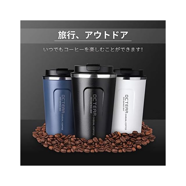 商品名:OCTERR マグカップ 保温 コーヒーカップ コンビニカップ 携帯マグ 保冷 タンブラー 真空断熱 ステンレス製 蓋付き 持ち運び 直接ドリップ プレゼントに (ブラック, 380ml)