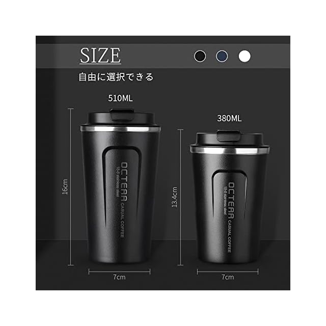 OCTERR マグカップ 保温 コーヒーカップ コンビニカップ 携帯マグ 保冷 タンブラー 真空断熱 ステンレス製 蓋付き 持ち運び 直接ドリップ プレゼントに (ブラック, 380ml) | Trend Design BASE店