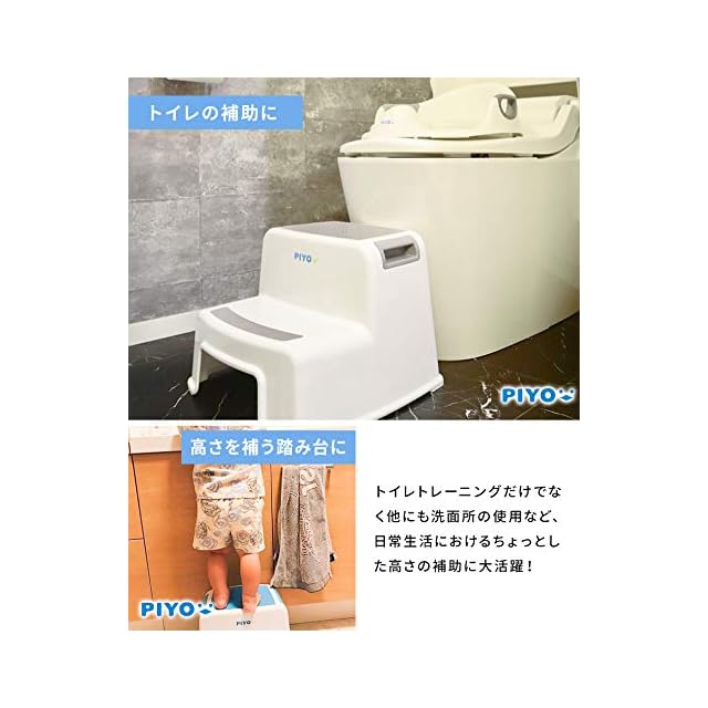 商品名:ピヨ(PIYO) 踏み台 子供 子ども 2段 二段 ステップ台 幼児 こども トイレ おしゃれ 耐荷重90kg (グレー)