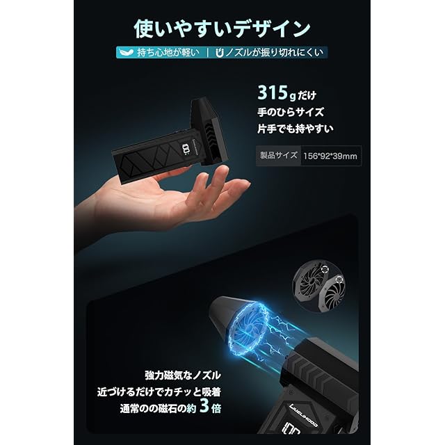 【ポケットに収まるコンパクトサイズで優れた性能を発揮】✅■15.6cm x 9.2cm x 3.9cmの超コンパクト設計は、ポケットにもすっぽり収まる手のひらサイズ。わずか315gの軽量設計で、エルゴノミックデザインにより、長時間の使用でも手の疲れを感じません!室内はもちろん、アウトドアや車内での使用にも最適です!カバンやポケットにスッと収納でき、どこでも手軽に取り出してお使いいただける利便性は驚くほど!場所を選ばず、自由に持ち運びして活躍する、最高に携帯性の高いアイテムです。