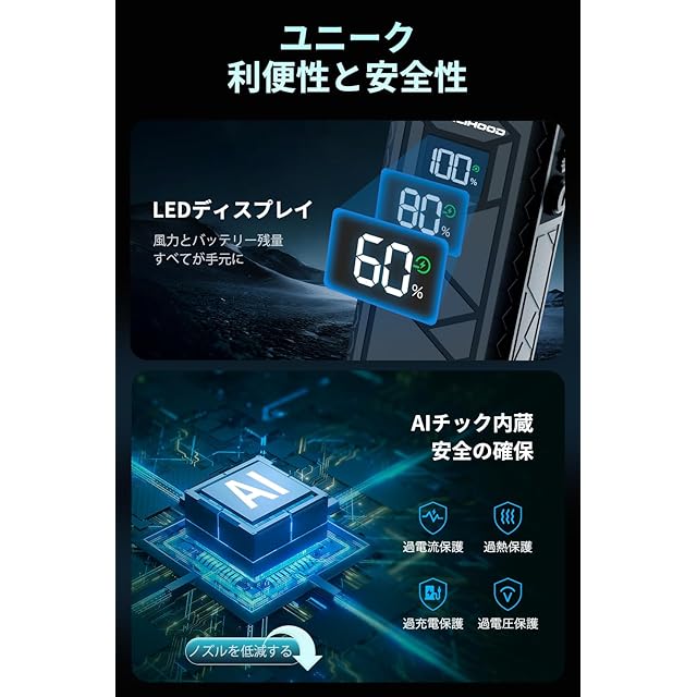 【どんなシーンでも4段階の風量調整で完璧に対応】 ✅■風量は1段階から4段階まで自由に調整可能!車の隅々に溜まった水滴や泥、パソコンの中のホコリを瞬時に吹き飛ばし、手の届かない場所にも完璧に対応!パソコンやカメラ機器の精密な掃除には1~2段階、車やアウトドアでの大掃除には3~4段階で強力な風力を選択可能です。さらに、長押しで瞬時に4段階目の強力風速を発動して、キャンプやバーベキューでの着火にも便利です! そして、風速の調整がこんなに簡単です! ✅■風速ボタンを短押しで、1段階→2段階→3段階→オフ。 ✅■風速ボタンを長押しで、4段階風速をオンに。風速ボタンを長押しして解除すると、4段階風速がオフになります。