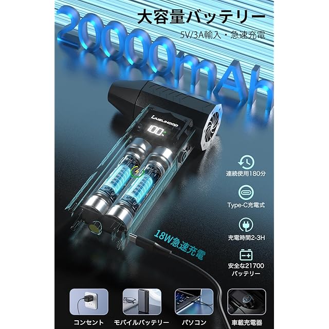 【超音速ジェットのようなパワーを実現!】■その圧倒的な風力の秘密はここにあり! ✅①高効率空気圧技術:航空ターボダイナミクスを応用して空気の圧縮と放出効率を最大化。ジェットエンジン並みのパワーと安定性を実現! ✅②超高効率ブラシレスモーター:200,000RPMの高効率ブラシレスモーターが最大風速101m/sを生み出し、業務用レベルの驚異的な風速を実現! ✅③ダブルタービンファン構造: 2つのタービンファンが大量の空気を吸い込み、瞬時に放出! ✅④専用タービンダクト:圧力を最大化する特別設計のタービンダクトが風を一点に集中させます!