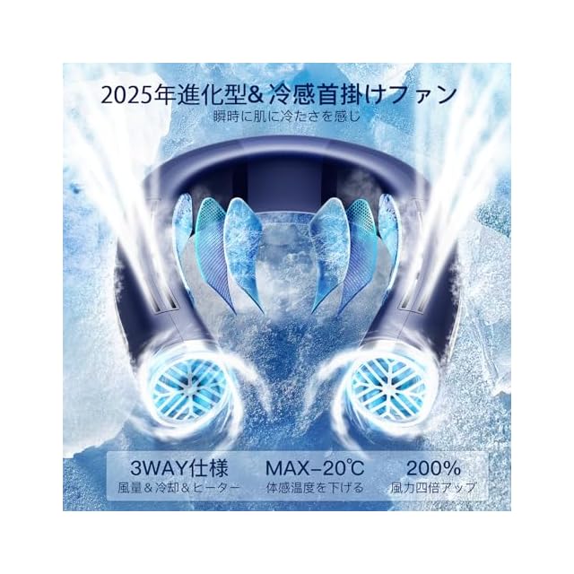 [2025年夏新型&冷感首掛けファン&MAX-20℃]この冷感首掛けファンは進化の半導体技術による冷却力が大幅に向上し、従来品と比べて、ダブル冷却プレートがあり、冷却面積が4倍以上、首と顔全体をしっかりとカバーし、瞬時に肌に冷たさを感じます。気温39度の猛暑でもたったの1秒でひんやり冷却し体感温度を-16℃~20℃下げることができます。首から全身にかけて強力な冷感を伝え、暑さを和らげます。快適な冷却効果をお楽しみいただけます。