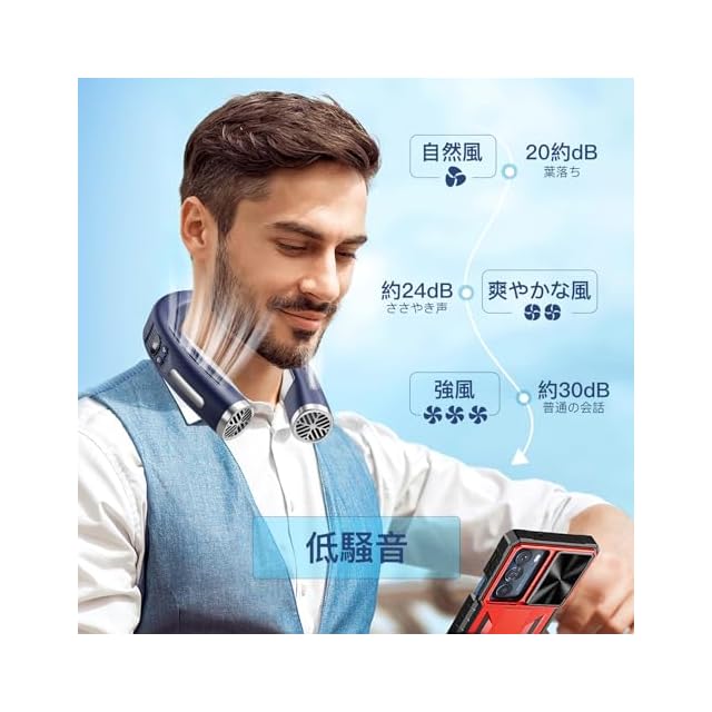 [静音設計&省エネ]ネッククーラーの静音性がアップしました。高品質のファンモーターに求められるすべての条件を満たした理想的な静音モータで、騒音を大幅に低減しました。低騒音(約26db)により図書館、スポーツ観戦、屋外作業、電車、オフィスなどの屋内、屋外で、場所を選ばずに使えます。また、従来のバッテリーに比べて高性能な素材を使用しており、このネッククーラーは低消費電力です。空気循環によって冷却効果を実現するため、エネルギーを節約し、夏のエアコンの電気代を削減できます。