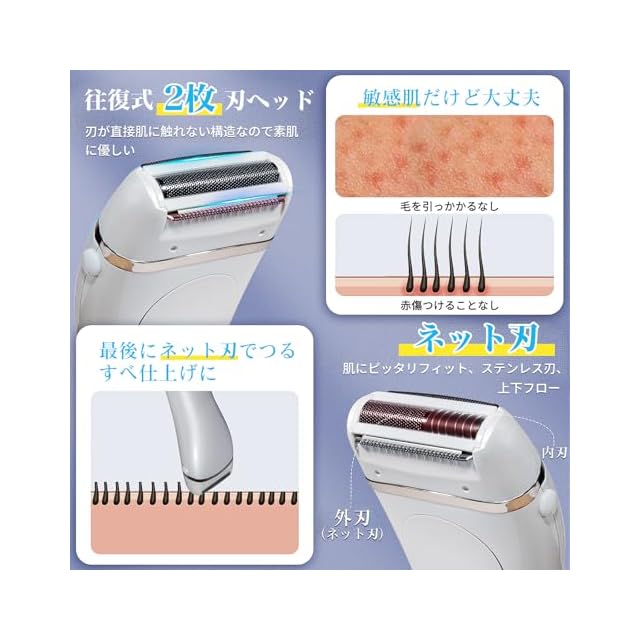 【IPX6防水仕様&乾湿両用&洗いやすい】弊社シェーバーは高品質のアレルギー防止ステンレス刃を使用し、肌が弱い方でも安心してご使用いただけます。vioシェーバーは独自にデザインされたヘッドを採用しており、深剃りができると同時に肌を傷つけません。vioシェーバーはステンレスブレード&ウェット・ドライ両用で、湿った状態でも乾いた状態でも安心してご使用いただけます。