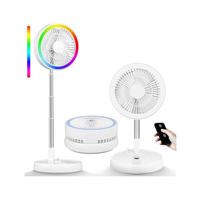 【2025節電対策・7200mAh電池・12色ライト】コードレス扇風機 折りたたみ dcモーター 扇風機 375-1000mm伸縮式 静音 リビング 卓上 usb充電式 リモコン付き 4段階風量調節 高さ無段階調節 小型 コンパクト収納 省エネ 強力 キャンプ/アウトド/宅内/オフィス/車の中/洗面所に適用 熱中症対策 (白い)