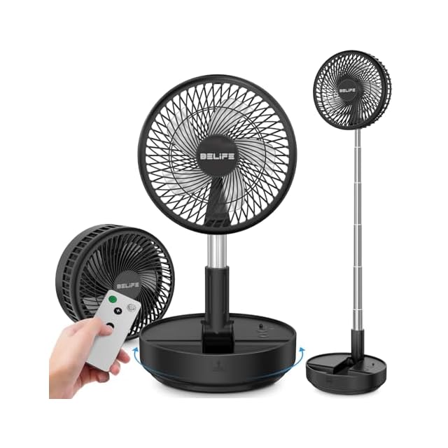 【2025節電暑さ対策 自動首振り】Belife X8 折りたたみ 充電式扇風機 コードレス 静音DCモーター 卓上 小型 サーキュレーター リモコン付き 4段階風量調節 伸縮式 高さ自由調節 コンパクト収納 7200mAh電池 アウトドア 室内 リビング 寝室 キャンプ対応 換気/空気循環/部屋干し/衣類乾燥 (黒)